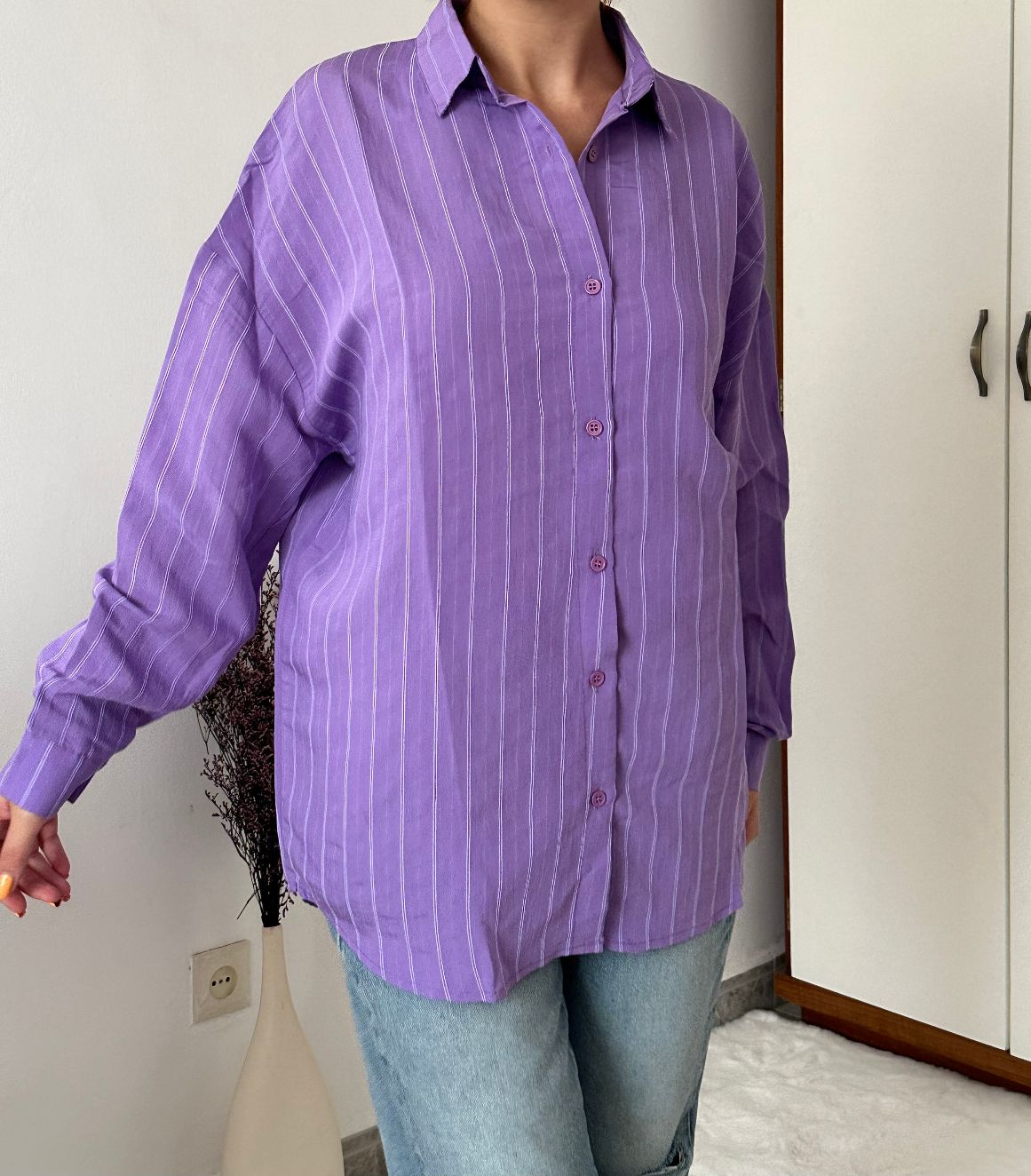 Chemise à rayures violete