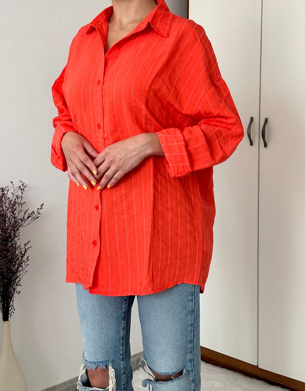 Chemise à rayures rouge